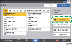在配置发送设置后,请在传真画面上指定目的地,然后发送传真。